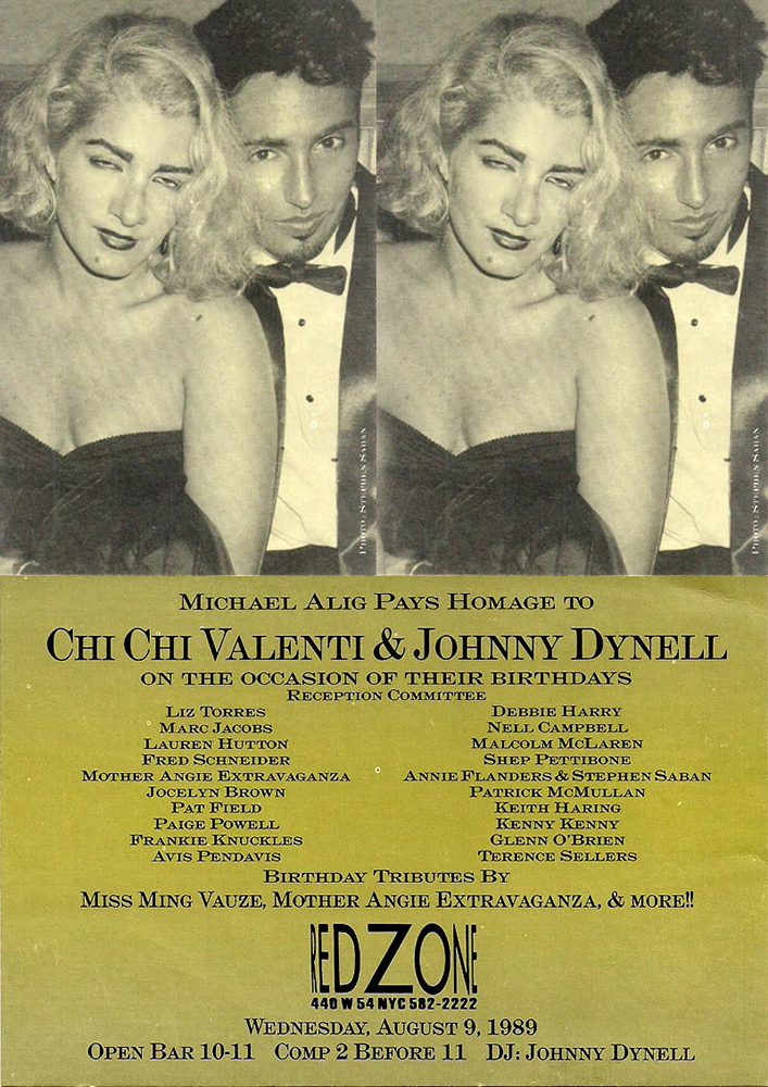 Johnny Dynell and Chi Chi Valenti Redzone birthday party invitation, 1989